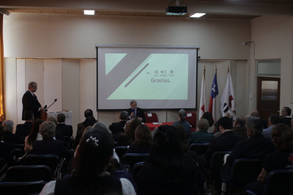 La jornada se inició con las palabras del Presidente Nacional de la Cruz Roja Chilena, Dr. Rafael Méndez Mella, quien destacó la relevancia de mantener vivo el espíritu y los valores humanitarios que han orientado la labor de la institución por más de un siglo.