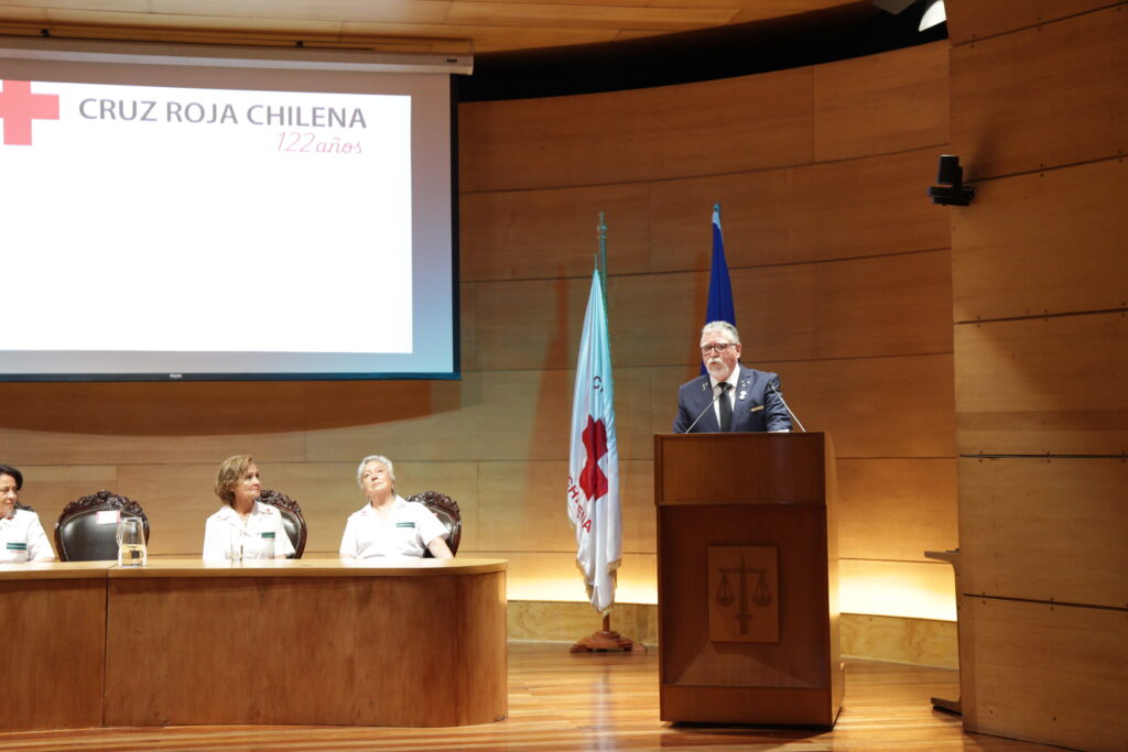 La Cruz Roja Chilena conmemoró este miércoles 17 de diciembre su 122° aniversario con una solemne ceremonia realizada en el Aula Magna de la Facultad de Derecho de la Universidad de Chile, instancia que reunió a autoridades del Estado, representantes del mundo académico, municipal, empresarial, del movimiento internacional de la Cruz Roja y la Media Luna Roja, además de voluntariado y amigos de la institución.