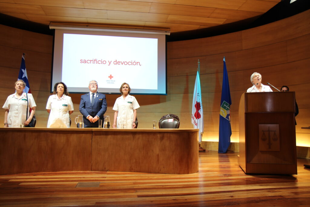 La Cruz Roja Chilena agradeció especialmente a la Facultad de Derecho de la Universidad de Chile por acoger esta significativa conmemoración en su Aula Magna, así como la presencia de su decano, Pablo Ruiz-Tagle, destacando el vínculo histórico entre ambas instituciones.