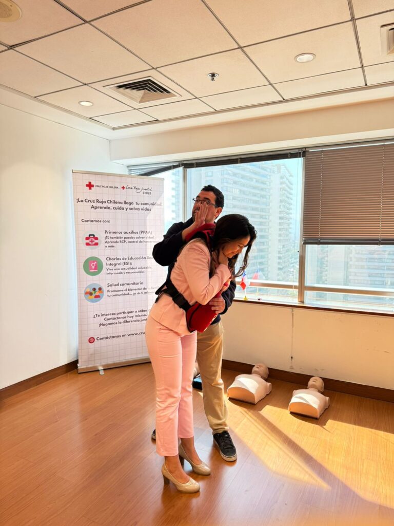 Durante la jornada, el equipo de voluntariado llevó a cabo una charla introductoria de reanimación cardiopulmonar (RCP) y uso de desfibrilador externo automático (DEA), entregando herramientas prácticas que pueden marcar la diferencia ante una emergencia en el entorno laboral. La instancia permitió no solo capacitar, sino también generar conciencia sobre la importancia de contar con personal preparado frente a situaciones críticas.