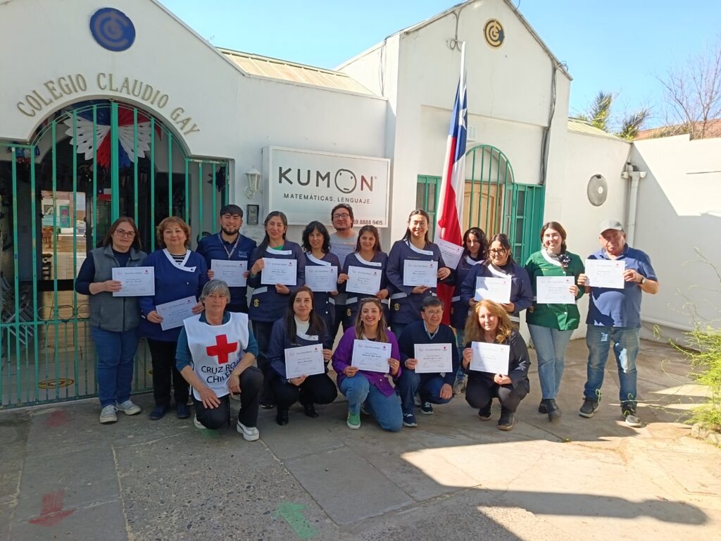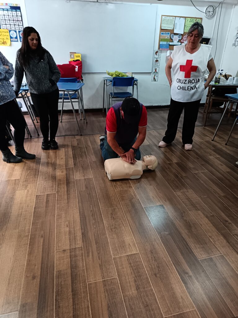 En el marco del Mes de la Celebración de los Primeros Auxilios, la filial desarrolló un taller de dos sesiones en el Colegio Claudio Gay, capacitando a 19 funcionarios en la atención inicial frente a distintos incidentes que pueden ocurrir dentro de un establecimiento educativo. La instancia permitió además aclarar dudas y fortalecer la preparación para situaciones de emergencia, beneficiando de manera indirecta a alrededor de 250 alumnos de educación básica y prebásica.