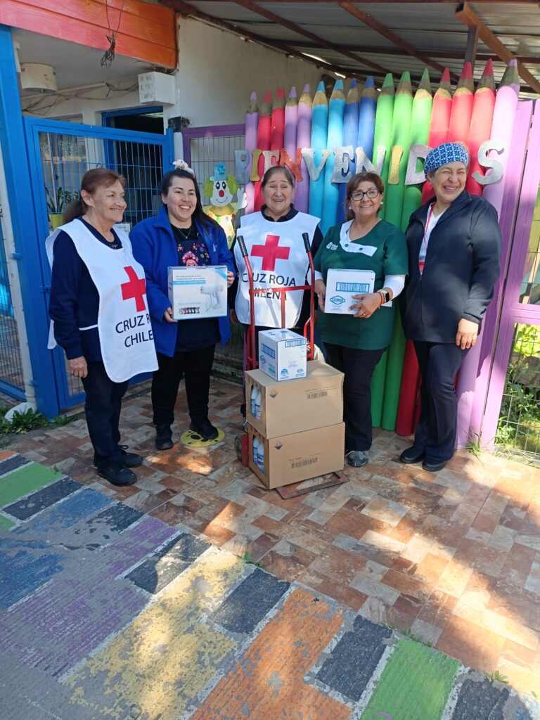 De manera complementaria, la filial realizó la entrega de 4 cajas de cloro, 4 cajas de toallas desinfectantes y 2 pulverizadores sanitizantes a la Escuela Básica Rural Francisco de Asís y al Jardín Infantil Solcitos de Pelvín.