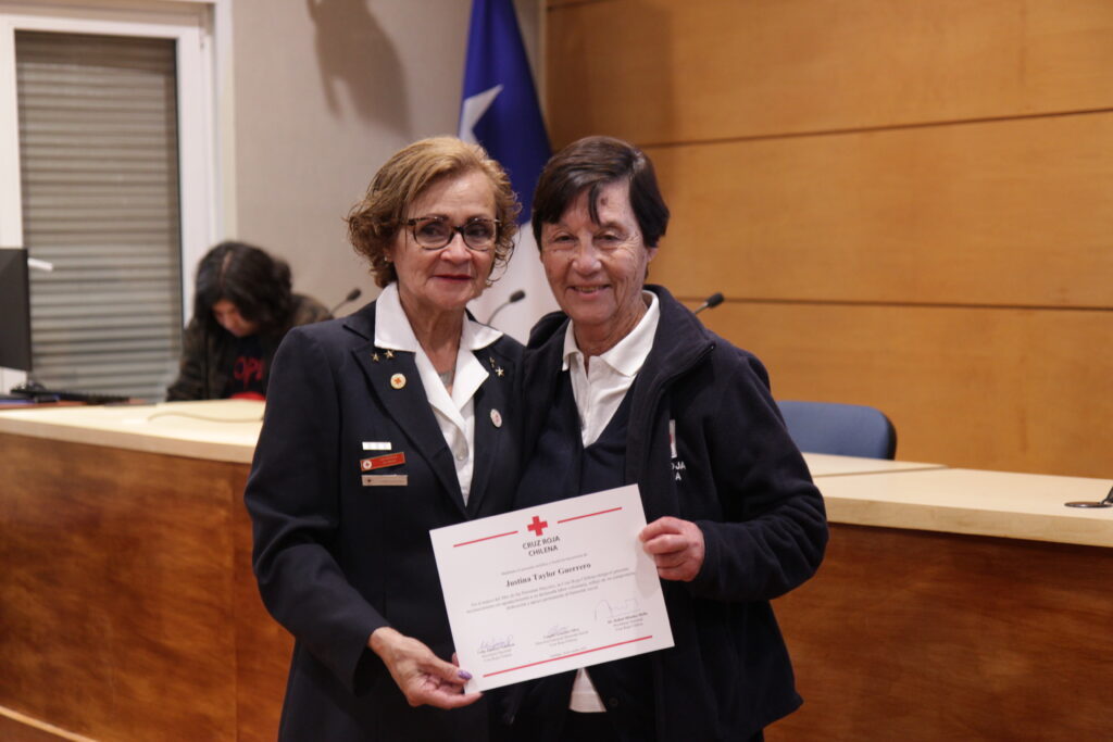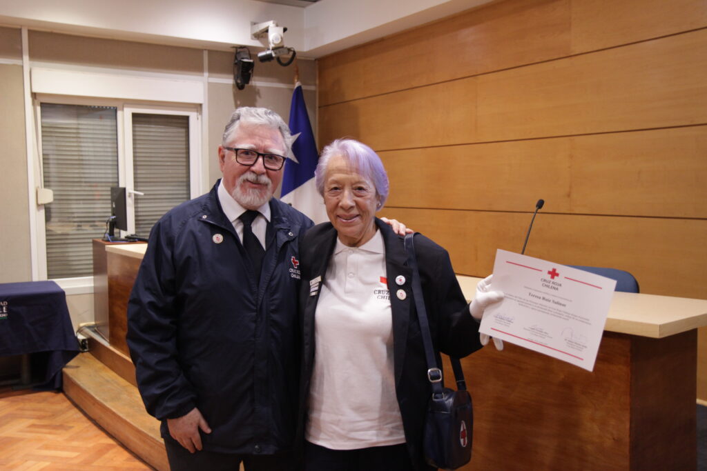 Durante la jornada, se realizó un reconocimiento especial a personas mayores voluntarias pertenecientes a distintas Filiales y Comités Regionales de la Cruz Roja Chilena, en agradecimiento por su dedicación, entrega y trayectoria al servicio de la comunidad.