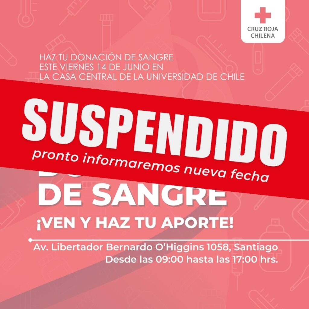 Debido al sistema frontal que afecta a la zona centro sur de nuestro país y también a la región metropolitana se ha determinado postergar la realización de la actividad conmemorativa del Día de la Donación de Sangre.